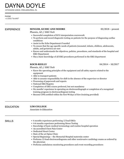 Ekg Tech Resume Examples - Livecareer provides examples with the best format, template & keyword. As an ekg technician, you have the power to transform lives by analyzing and interpreting heart rhythms. Are you ready to embark on a career filled with excitement and discovery? Are you looking for a strong example of an ekg technician resume to help you create or improve your own?.